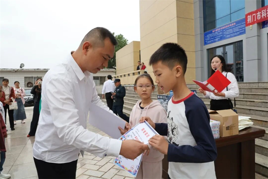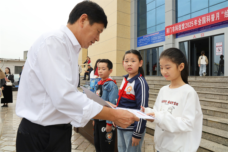 “每幅画都是一颗‘科学种子’,藏着大家对未来的好奇与向往。”颁奖现场,荆门市科技馆相关负责人对获奖作品逐一点评,肯定孩子们用画笔捕捉科技魅力的巧思。获奖学生代表王方奕分享了创作心得,讲述了从日常科技现象中获得创作灵感的过程。随后,工作人员为获奖学生和优秀辅导教师颁发了证书和奖品。