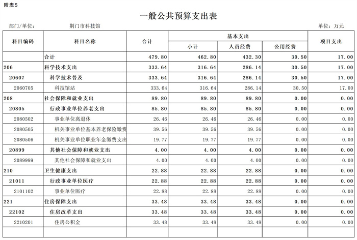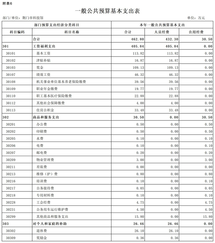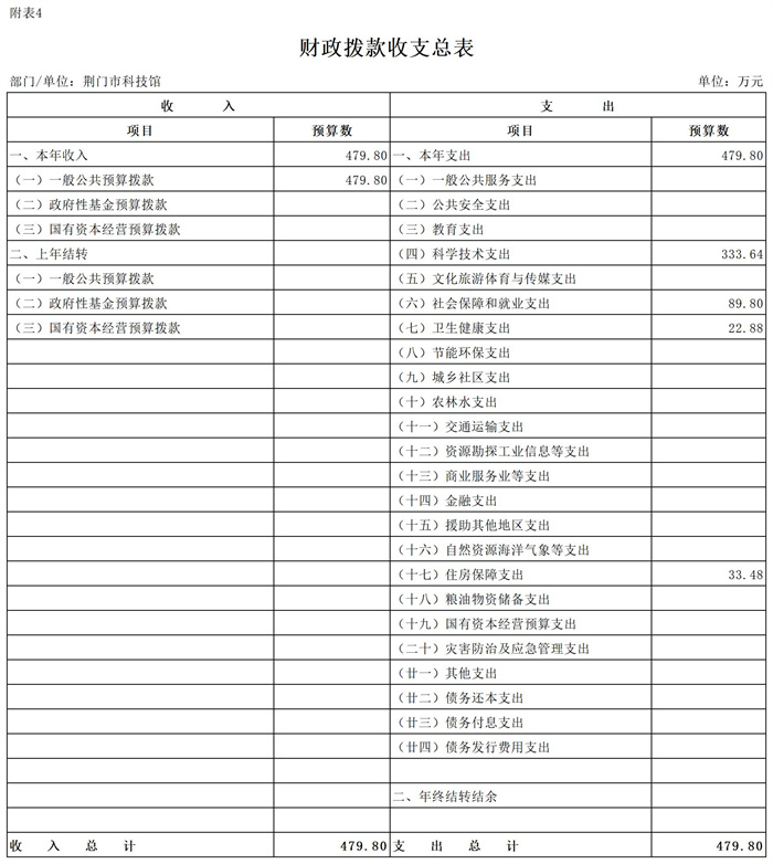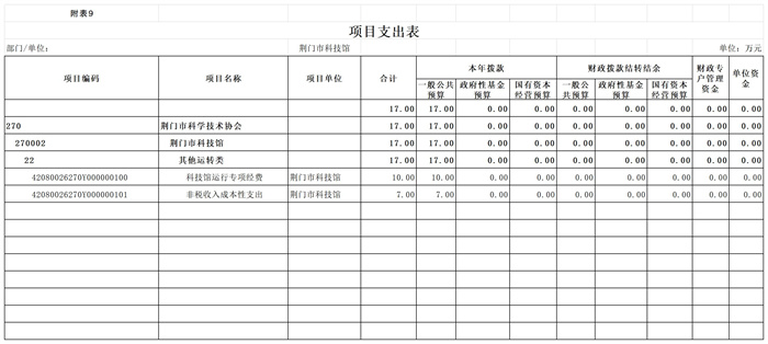 荆门市科技馆2026年部门预算公开表